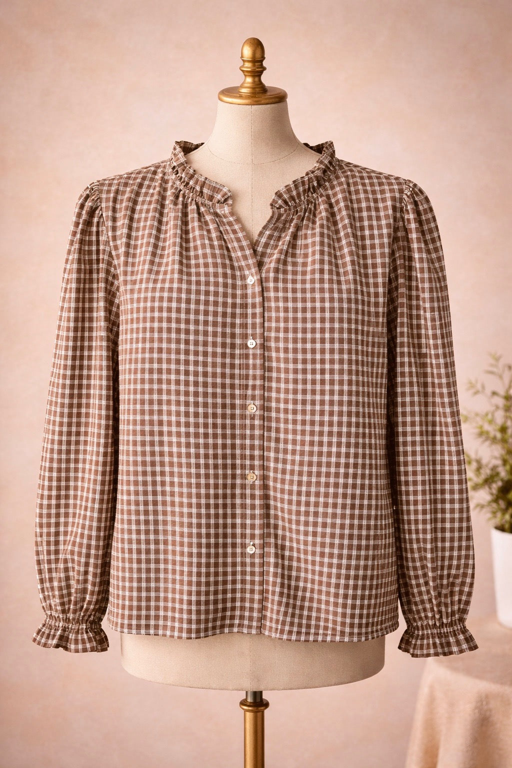 Chemisier marron à carreau